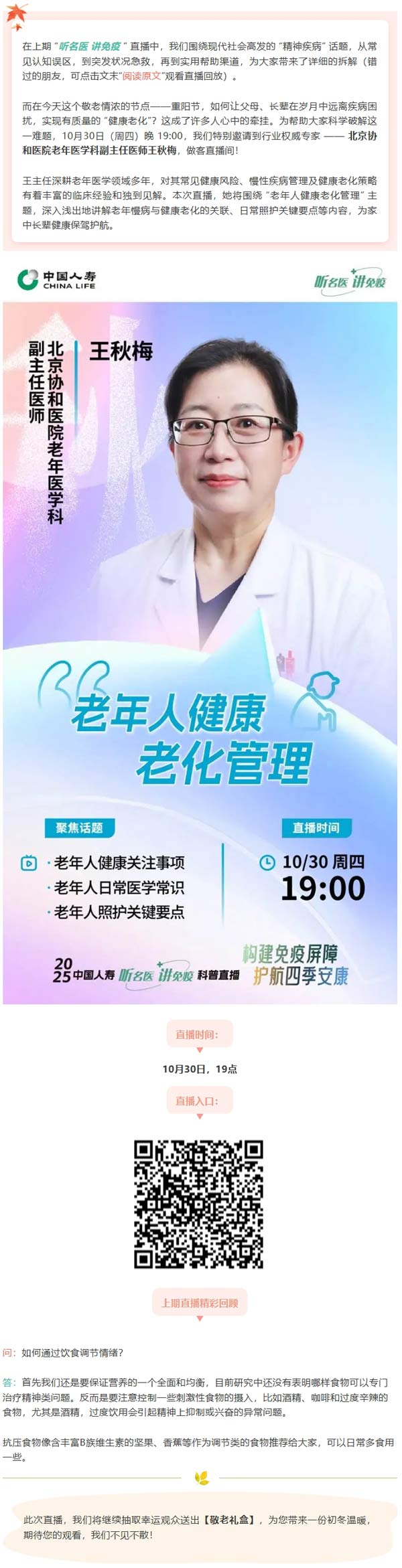 直播预告 | 明晚7点名医开讲:老年人健康老化管理