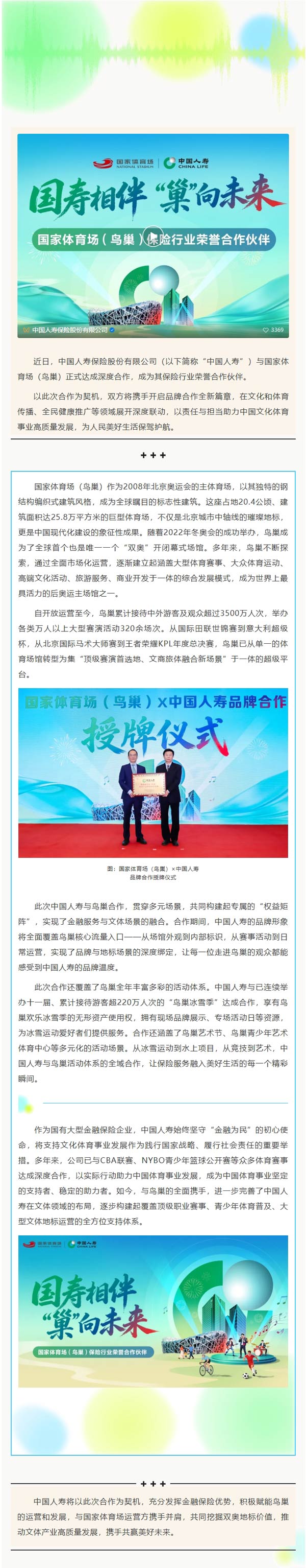 中国人寿正式成为国家体育场“保险行业荣誉合作伙伴”